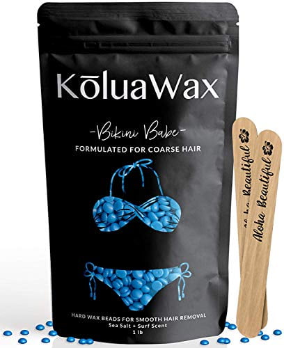 KoluaWax Hard Wax Beads for Hair Removal (Coarse Body Hair Specific) Our Strongest Blue Bikini Babe for Brazilian, Underarms, Back and Chest, Large ...