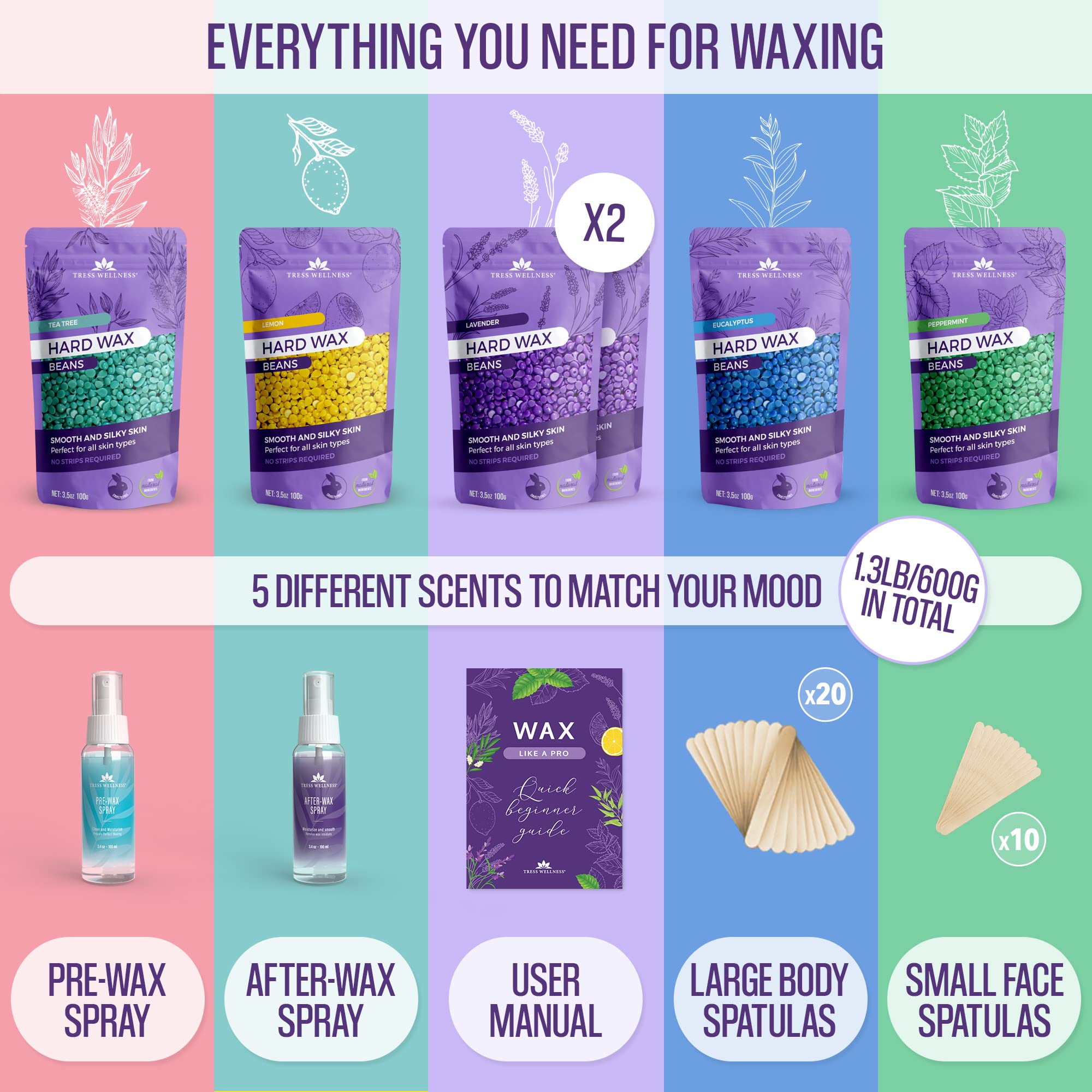Tress Wellness Hard Wax Beans Wax Beads 21oz - Painless Coarse Hair Removal - For Bikini Brazilian Underarms Back and Chest